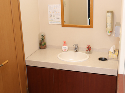 | 当院の受付です。スタッフが笑顔でお迎えします。わからないことはお気軽にご相談ください | 診療室の衛生管理はもちろん、待合室やパウダールームも清潔維持を心がけています。 |
